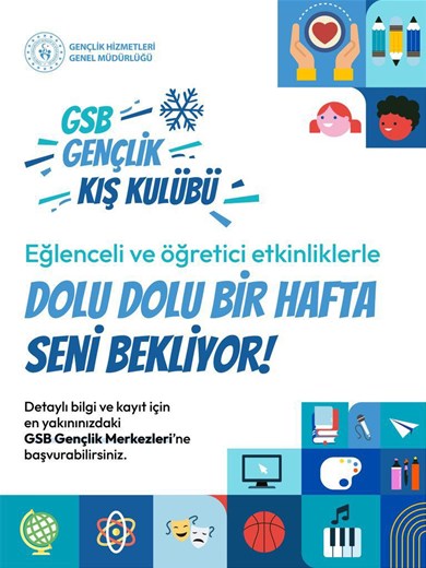 GSB Gençlik Kış Kulübü, Afyonkarahisar genelindeki GSB Gençlik Merkezlerinde iki ayrı dönem halinde uygulanacak. Programın birinci dönemi 19–24 Ocak 2026, ikinci dönemi ise 26–31 Ocak 2026 tarihleri arasında gerçekleştirilecek. Yarıyıl tatili süresince devam edecek etkinlikler, gençlerin ilgi ve ihtiyaçları göz önünde bulundurularak planlandı.