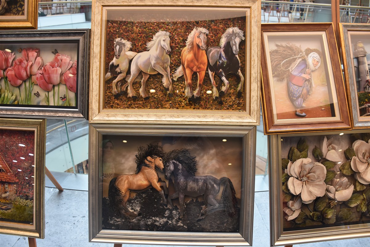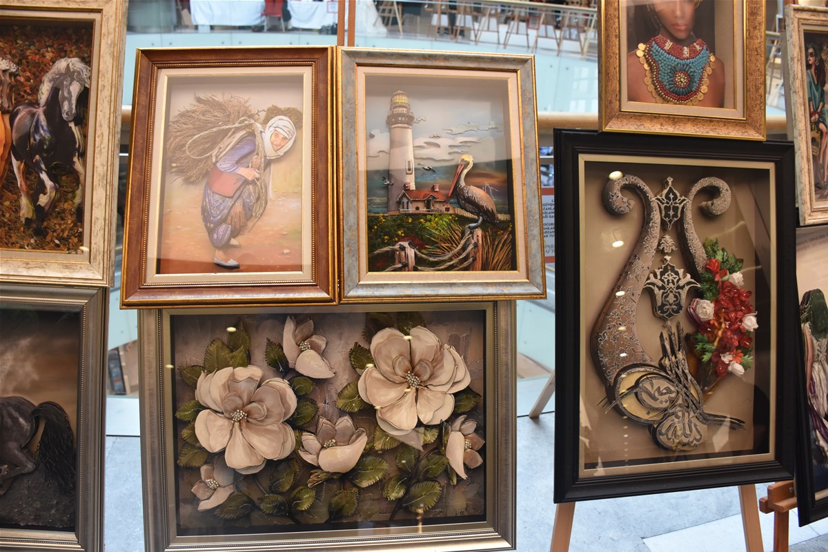 Park Afyon AVM'de düzenlenen sergi, kursiyerlerin; rölyef, ahşap boyama, resim, hat-ebru, fotoğrafçılık, tel kırma, taş mozaik, geri dönüşüm tasarımı, amigurimi, ipek koza, taş boyama ve keçe branşlarında ürettiği eserleri bir araya getirdi. Sergi, sanatseverlerin ilgisini çekici birçok eseri bir arada görme imkanı sağladı.