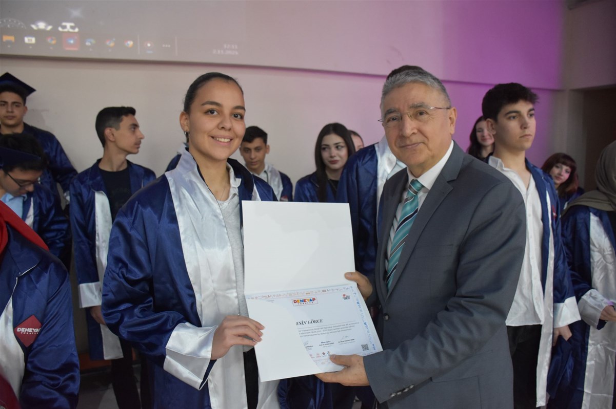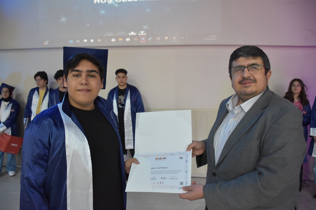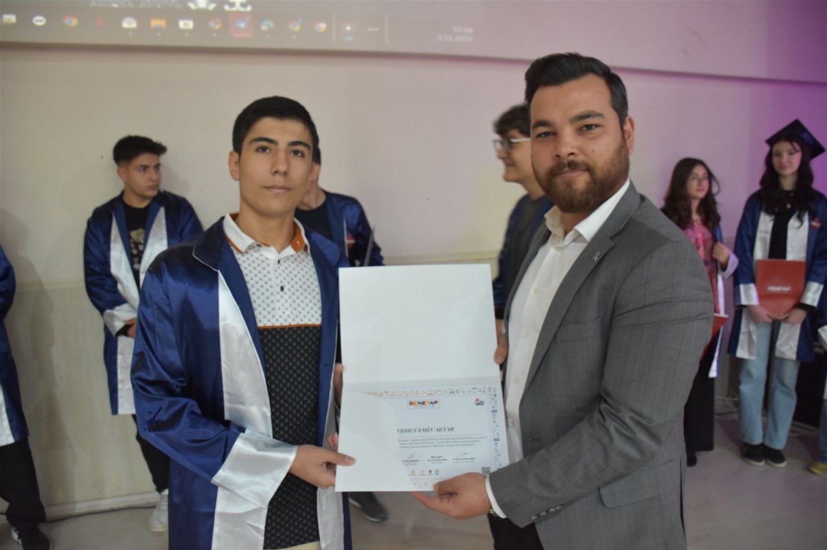 Bu kapsamda, Afyonkarahisar Deneyap Teknoloji Atölyesi’nde eğitimlerini başarıyla tamamlayan 53 öğrenci, düzenlenen mezuniyet töreninde büyük bir gurur ve mutluluk yaşadı. Öğrencilere başarı belgeleri; Gençlik ve Spor İl Müdürü Nedim Aslan, Sanayi ve Teknoloji İl Müdür Vekili Abdurrahman Topatan, Gençlik Hizmetleri Müdürü Ahmet Ertürk, T3 Vakfı Afyonkarahisar İl Sorumlusu Mustafa Yalçın, KOSGEB KOBİ Uzmanı Buğra Uçakcıoğlu ile Afyonkarahisar ve Karahisar Gençlik Merkezi Müdürleri tarafından takdim edildi.