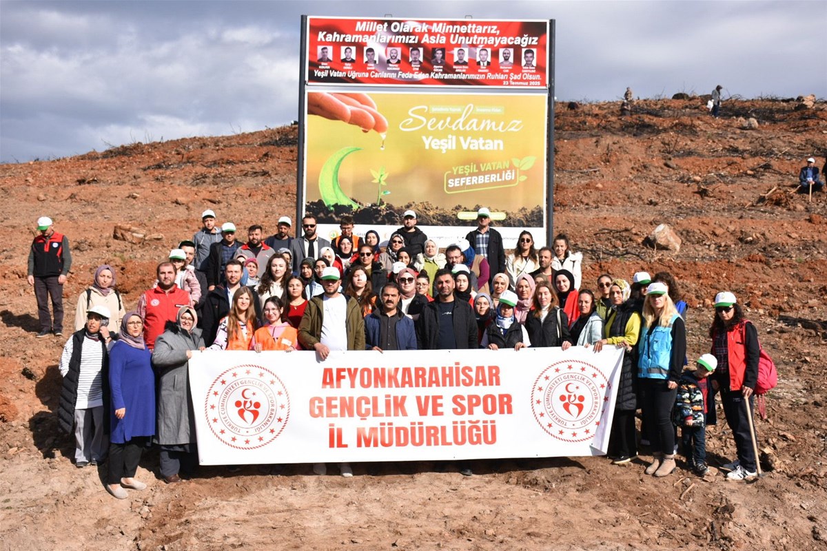 Afyonkarahisar Gençlik ve Spor İl Müdürlüğü personeli, genç gönüllüler ve sporcular; çevre bilinci, doğa sevgisi ve sürdürülebilir yaşam farkındalığıyla hareket ederek ormanların yeniden yeşertilmesine katkı sundu.
