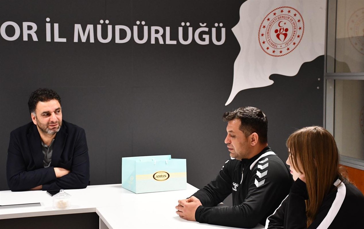 Ziyarette; Sebahat Işıkcı, Şadiye Almacık, Tuğçe Naz Ucuz, Emine Beyza Barışkan, Elvan Ebrar Gökbulut, Fatima Kasal, Melisa Sarıçiçek, Gizem Şu Sakin, Ennur Önkal ve Nimet Nur Kolcu hazır bulundu. Başarılı sporcularımız, antrenman süreçleri ve katılmayı planladıkları şampiyonalar hakkında İl Müdürü Nedim Aslan’a bilgi verdi.